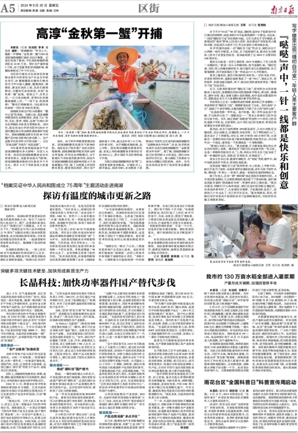 近期,《南京日报》发表了一篇关于公司创新发展,加快形成新质生产力的专题报道,较为全面地展现了长晶科技自创立以来,坚守初心、锐意进取,始终坚持研发创新和产业整合,努力掌握半导体领域关键核心技术的奋斗历程。